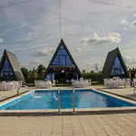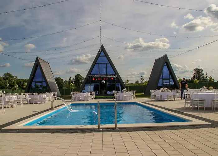 La villa Dream Place Resort Bijeljina cuenta con una terraza con vistas al jardín y una piscina.